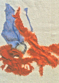 farbige Stoffreste, Plastikfigürchen, ein Autoschild. Der Betrachter ist in