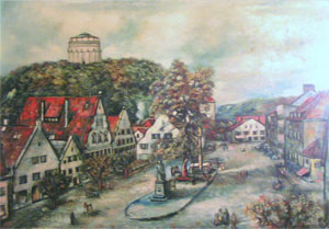verzeichnet Walter Tanau erste Bilderverkäufe: Aquarell Donautal, zahlreiche